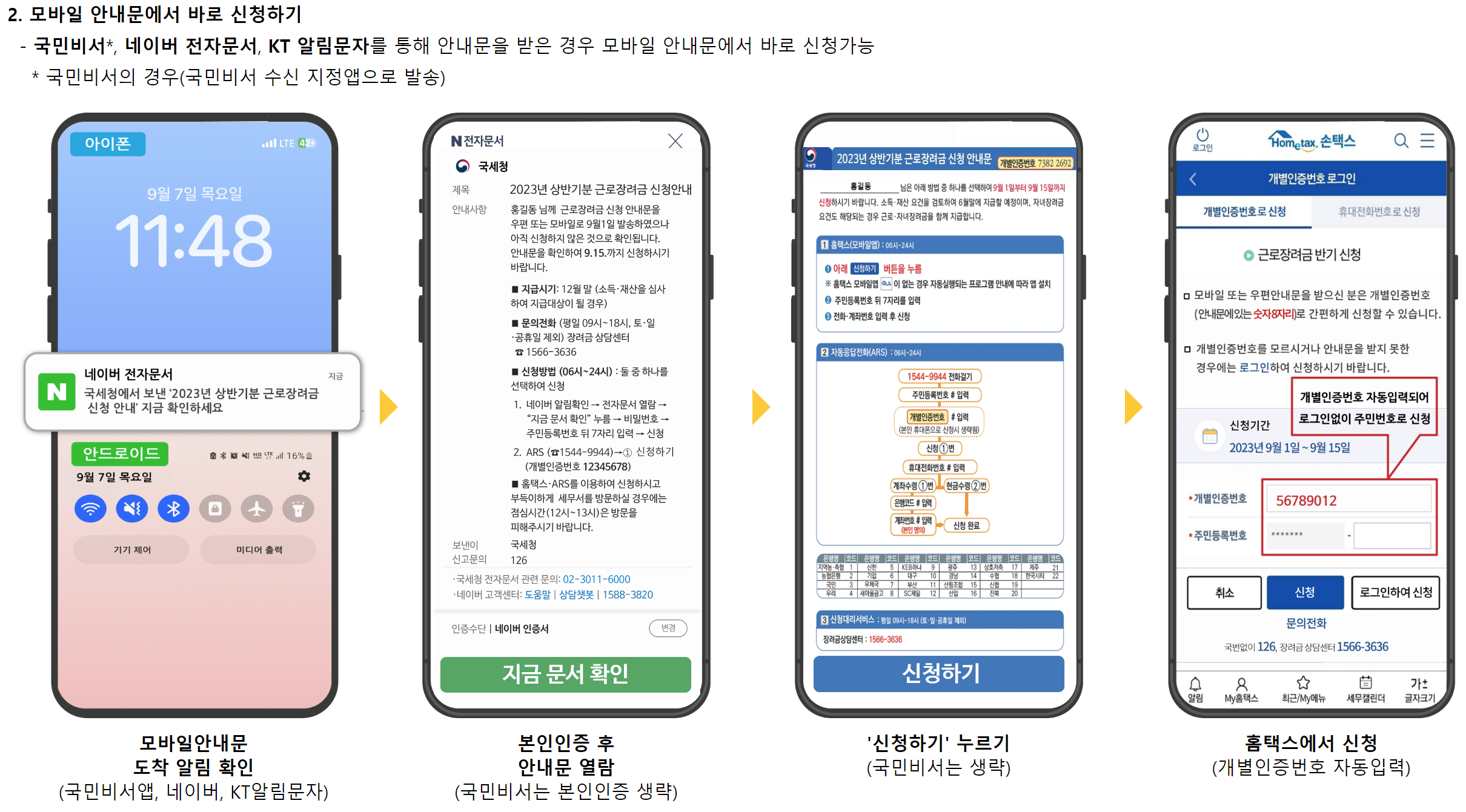 • 신청 안내문을 받고 홈택스(모바일, PC)에서 신청하는 방법은 아래를 참고하시기 바랍니다.